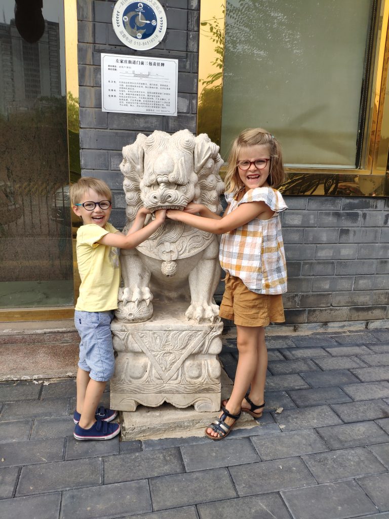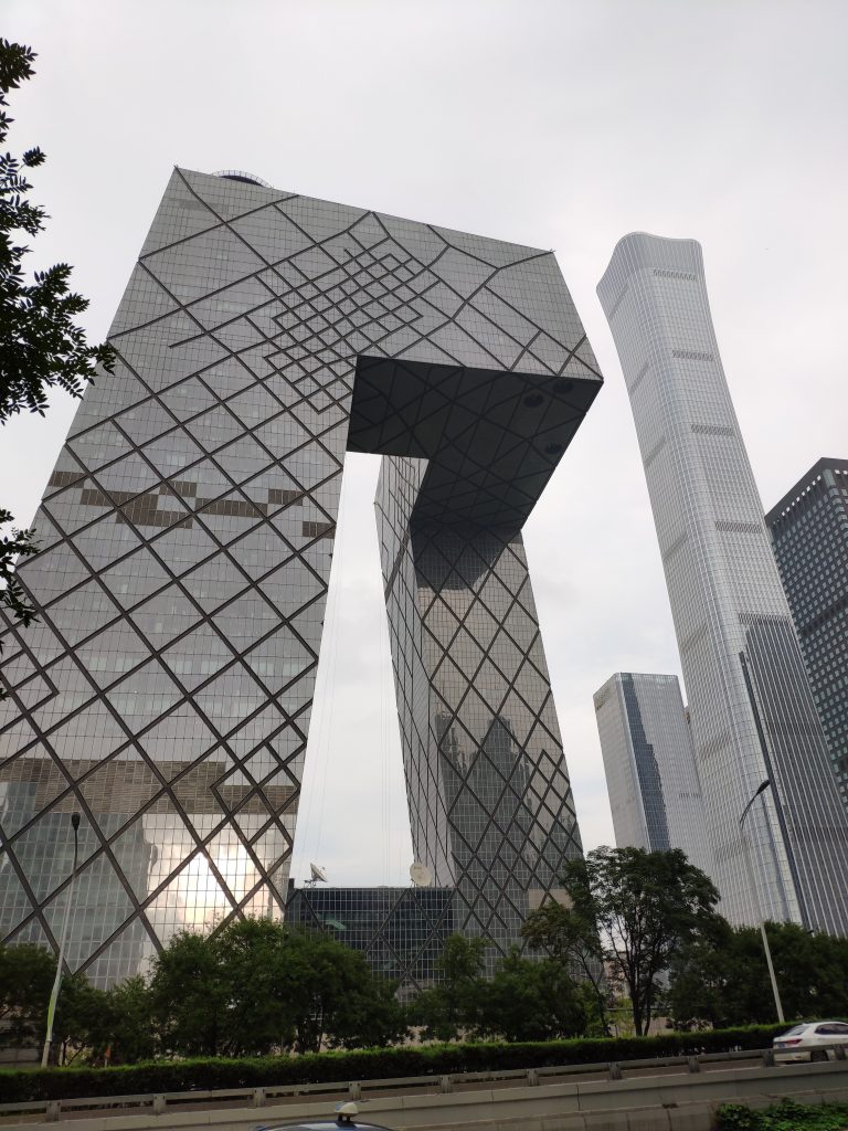 On s’est ensuite baladé dans le quartier des ambassades et on en a profité pour faire des petits problèmes de math, adaptés à chaque enfant (et ils en demandaient toujours plus — NDLR: idée venue du calcul de monnaie rendue au moment de payer le déjeuné…je crois qu’on se souviendra longtemps que ce repas nous a coûté 266RMB!!) avant de reprendre le métro pour Chaoyang. On a admiré les différents gratte-ciel et notamment la tour de la CCTV (tour de la télévision centrale chinoise) surnommée “la grande culotte”.