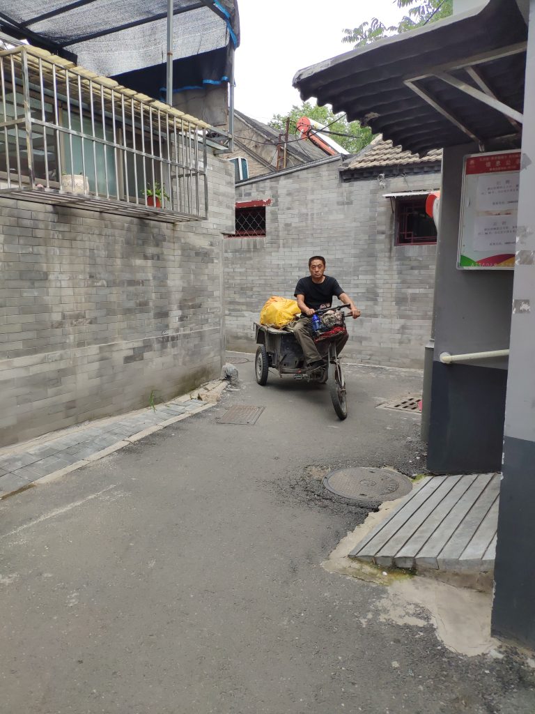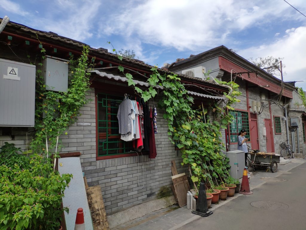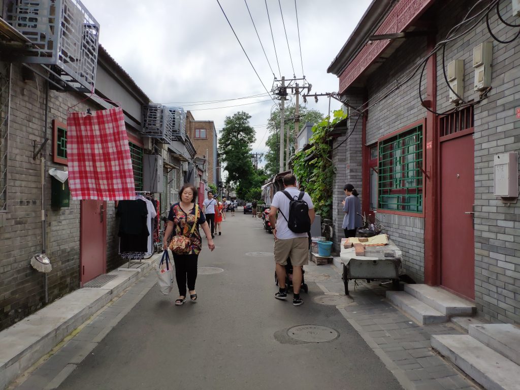 Après réflexion nous nous sommes dit que c’était mieux d’entrer par le nord que le sud (afin de finir par la place Tien’anmen). À la sortie du métro nous avons commencé par traverser des hutong afin de rejoindre l’entrée nord. Ces petites ruelles traditionnelles sont très agréables. Les murs sont tous gris et les portes souvent rouges. Nous avons pris quelques photos, notamment devant les portes et Léonard, en s’appuyant sur une porte à réussi à tomber à la renverse dans l’entrée d’une maison. Cela a beaucoup surpris l’habitante qui est venue fermer la porte en vitesse.