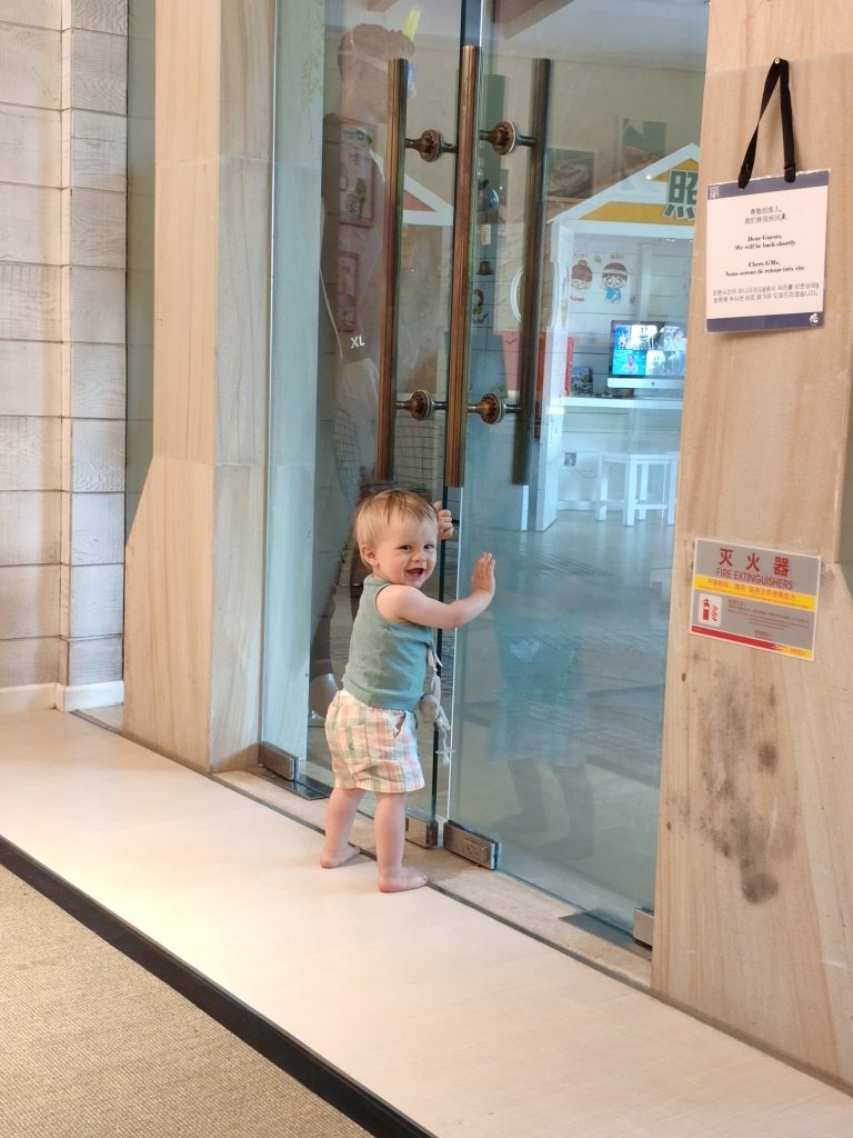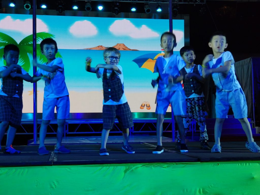 Après le petit dej les enfants ont rejoint le mini club. Ils étaient un peu inquiets que personne ne parle français mais finalement certains animateurs (GO) parlent un peu français et ils se sont fait une copine franco chinoise qui parle français (elle vit à Courbevoie “comme mamie” s’est exclamée Valentine) et parle un peu chinois. Elle a pu leur traduire pas mal de choses pendant la journée. Ils ont aussi sympathisé avec une petite fille chinoise qui parle un peu français (sa maman qui a étudié en Suisse enseigne le français à Shanghai).