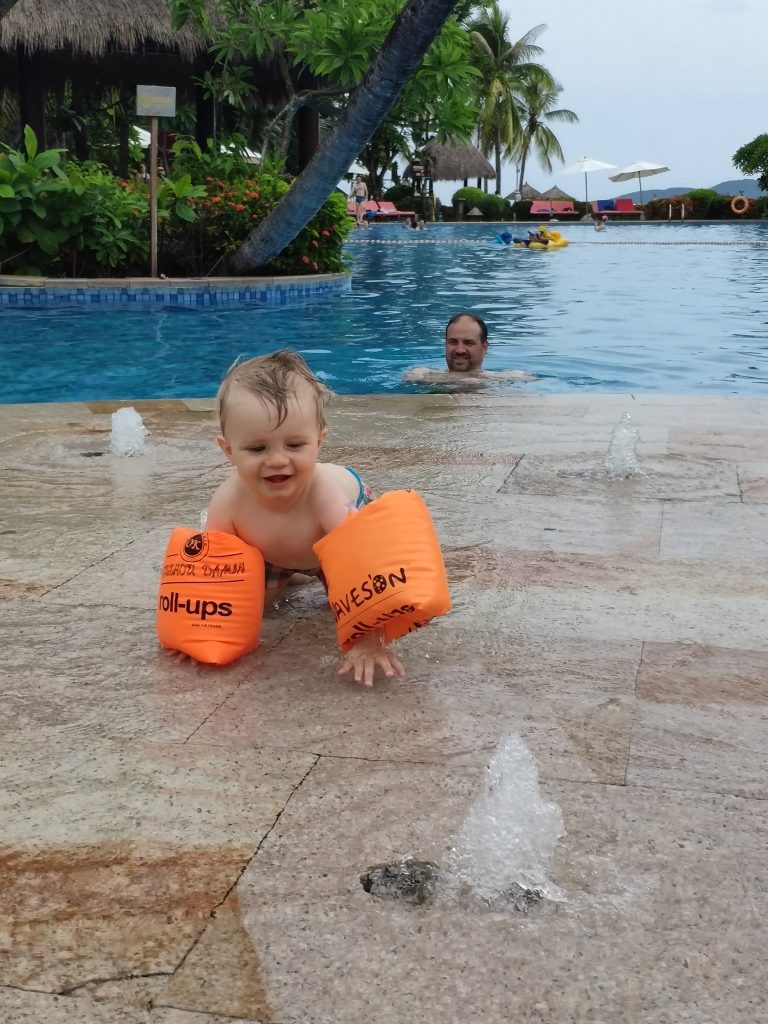 Cette première journée au Club Med a bien plu à tout le monde. Elle a démarré par une dent tombée chez Valentine (2eme incisive en bas à droite). Elle bougeait depuis quelques jours et Valentine était impatiente (sa précédente dent tombée datait de la rentrée 2018…) mais pas sûr que la petite souris passe à Hainan (quoi que ça serait plus intéressant pour la petite souris de mettre 2 yuans à la placede 2 euros)