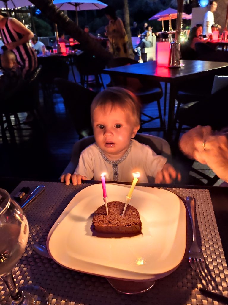 Auguste a eu 11 mois aujourd’hui. Nous lui avons fait souffler ses bougies au dîner, avant d’assister au spectacle des enfants qu’ils avaient répété pendant la journée. Encore une fois, ils étaient ravis. Après leur spectacle c’était le spectacle du club, un show de haut niveau avec son, lumière, danseurs et accrobates. On a halluciné sur le niveau. Je suis ensuite allée coucher les garçons pendant que Valentine et Vincent ont participé à un jeu où ils sont arrivés 2eme.