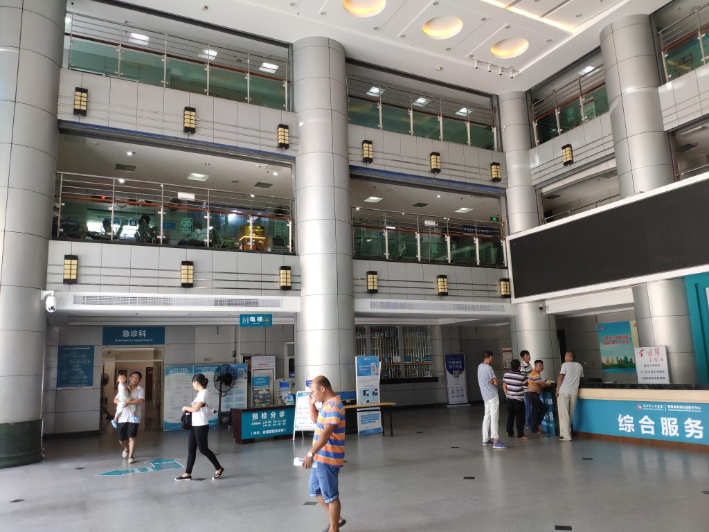 L’hôpital est à 30 minutes de route. Il ne fait pas du tout hôpital d’extérieur et pas trop non plus dans le hall interieur. On se présente à un premier guichet après un peu de queue puis à un second, on repasse au premier (je ne comprends pas tout, heureusement que le GO est là…) pour finalement monter au 9eme où ils font les sutures. On s’enregistre et on attend une bonne heure dans une petite salle de passage sans clim. Léonard n’est pas traumatisé et est ravi de regarder des dessins animés sur mon téléphone en attendant son tour. Nous sommes assis sur des sièges massants (payants). C’est assez étonnant.