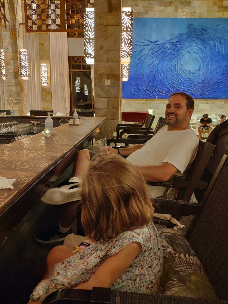 Ensuite apéro, dîner et spectacle avec pour thème Bollywood. Léonard s’est endormi pendant le spectacle… De notre côté on a organisé la chambre afin que s’il y a de nouveau une chute, il ne se blesse pas.