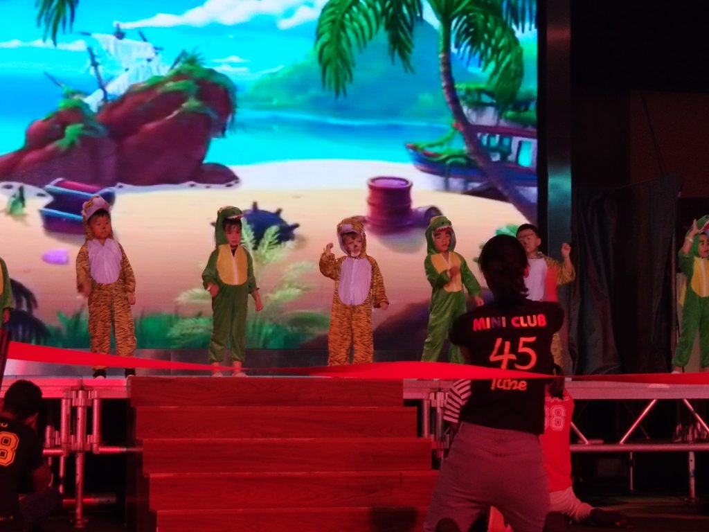Petit plouf dans la piscine, le soleil revenu en milieu de journée tapait bien. Les enfants ont dîné avec le mini club et sont ensuite allés se changer/ maquiller pendant que nous assistions à la remise des médailles du sport (on a eu plein de bracelets grâce aux différentes activités sportives que l’on a testées) et nous dînions.