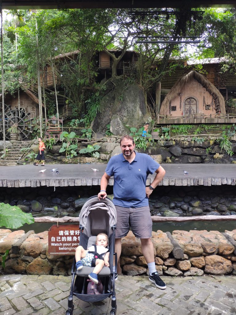 Après nous avons repris la voiturette sans savoir où elle nous mènerait (les plans n’étaient pas vraiment clairs et on n’avait du mal à communiquer avec les chauffeurs ou personnes pour indiquer le chemin). Nous avons finalement débarqué au village Miao. L’accueil était plutôt bon pour des chanteuses. Mais le reste nous a moins plu car c’était très commercial: il fallait payer pour tout (faire une photo avec des paons, un perroquet ou en habit traditionnel, nourrir des poissons, toucher un serpent…) et dès que nous passions une zone avec des choses à vendre, on était accaparé par des vendeurs.