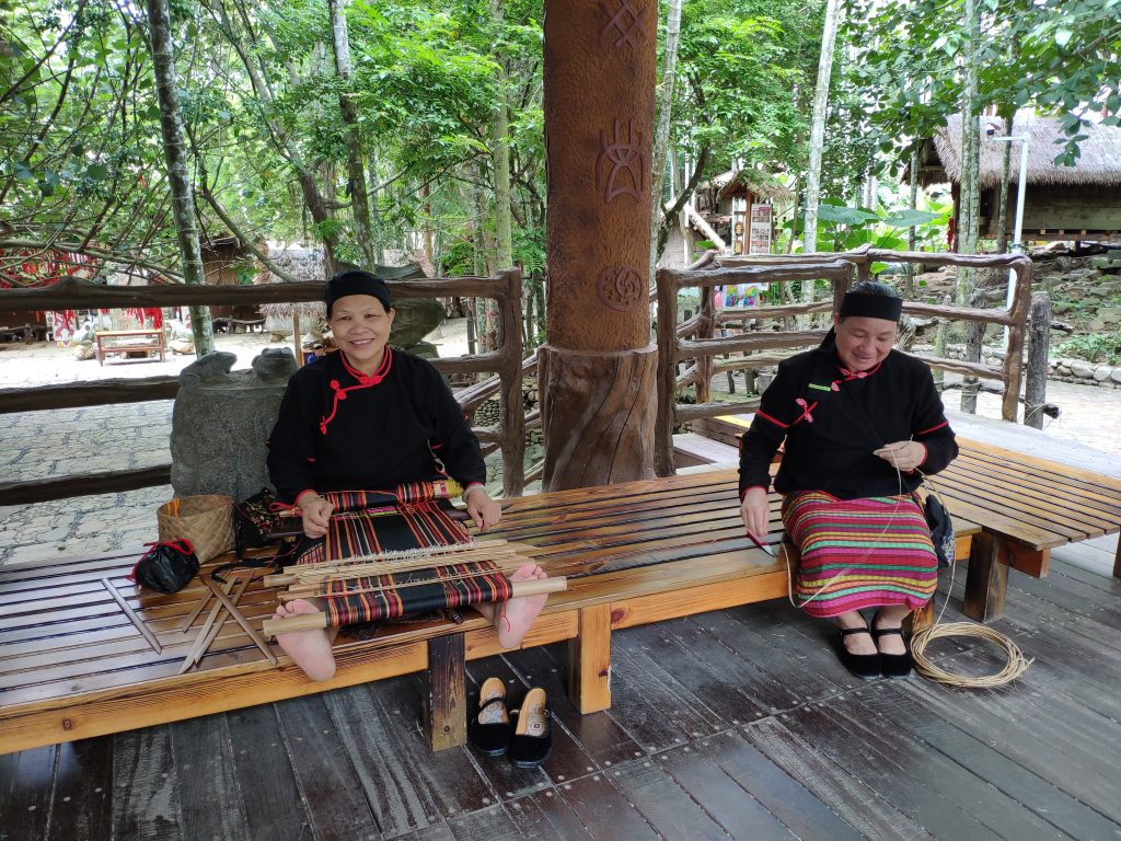 Nous avons ensuite visité les différents villages. D’abord le village Li, plutôt très agréable, avec des tisseuses, des musiciens, des personnes qui faisaient de la poterie (que nous pouvions prendre en photo sans problème). Nous y avons visité des petites huttes traditionnelles. Il y avait également de la cuisine locale à tester. Nous n’avons pas pris de risque et juste testé de la noix de coco séchée et un petit échantillon de gâteau.